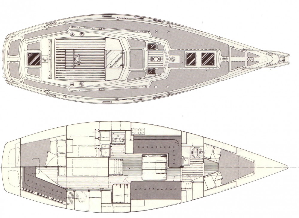 Il 38S è il tipico Contest degli inizi anni ’80. Disponibile con l’armo a ketch e sloop, è un’imbarcazione solida, sicura e di facile gestione anche con un equipaggio famigliare. Questa barca è l’ideale per intraprendere lunghe navigazioni e i suoi generosi spazi interni permettono una vita a bordo molto confortevole. Grazie al pozzetto centrale è stata ricavata una spaziosa cabina di poppa con cuccette singole o doppie e un piccolo bagno. Gli interni sono molto curati, il bagno principale è davanti e la cabina di prua è piuttosto stretta. Ha una cucina eccellente ed un enorme tavolo da carteggio. Di serie monta la chiglia “alata” (wing keel).